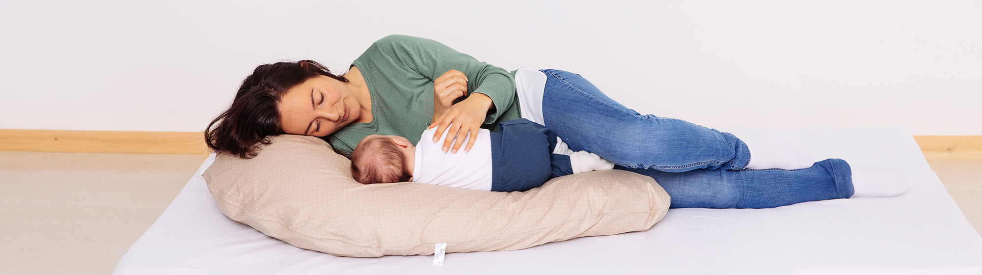 Um Ihren Rücken in der seitlichen Schlafposition während der Schwangerschaft zu stützen und entspannter zu schlafen, benutzen viele Schwangere gerne bereits vor der Geburt ein entsprechendes Kissen.